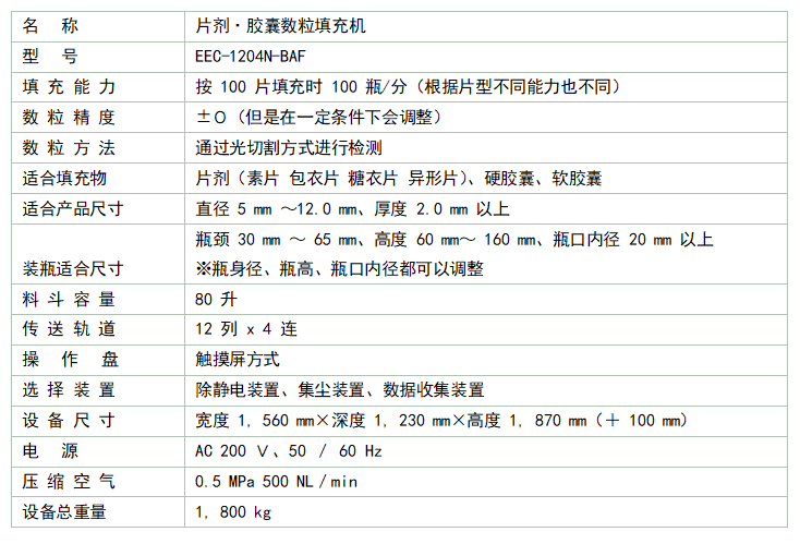 (2)不良品自動排出 出現數粒不良或安全裝置運作時,排出正在數粒中的產品,只填充再次數粒后的良品 |