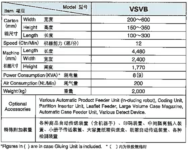 A fully automatic corrugated cardboard set-up caser which performs case forming and product-loading on one single machine. Case opens vertically and products are loaded from the top opening. Quick change mechanism featured as the standard assured easier changeover.